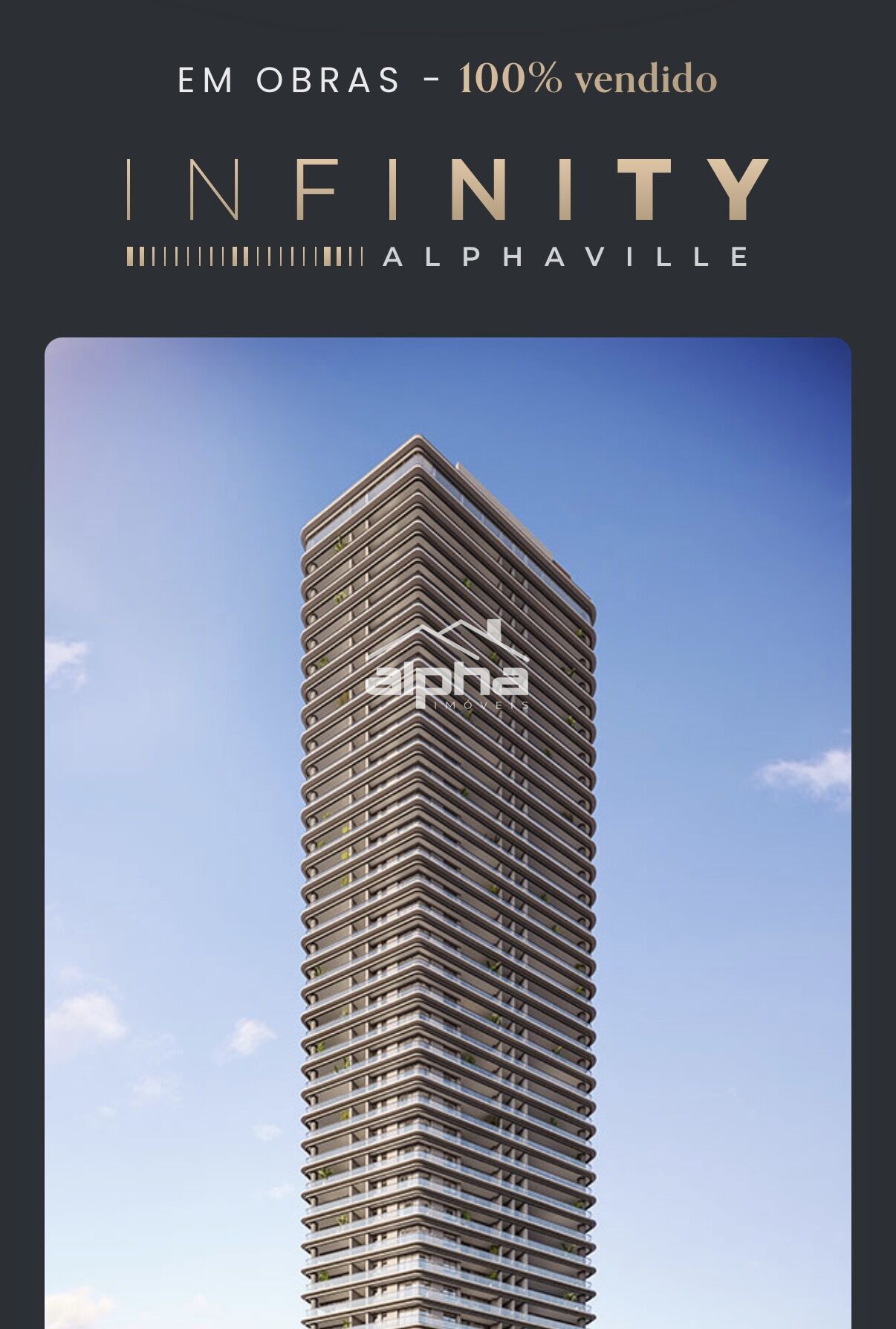 Localizado no Infinity Alphaville, projeto totalmente vendido na planta, este apartamento está no 5º andar, com 110 m² de área privativa, planta inteligente e excelente potencial de valorização.