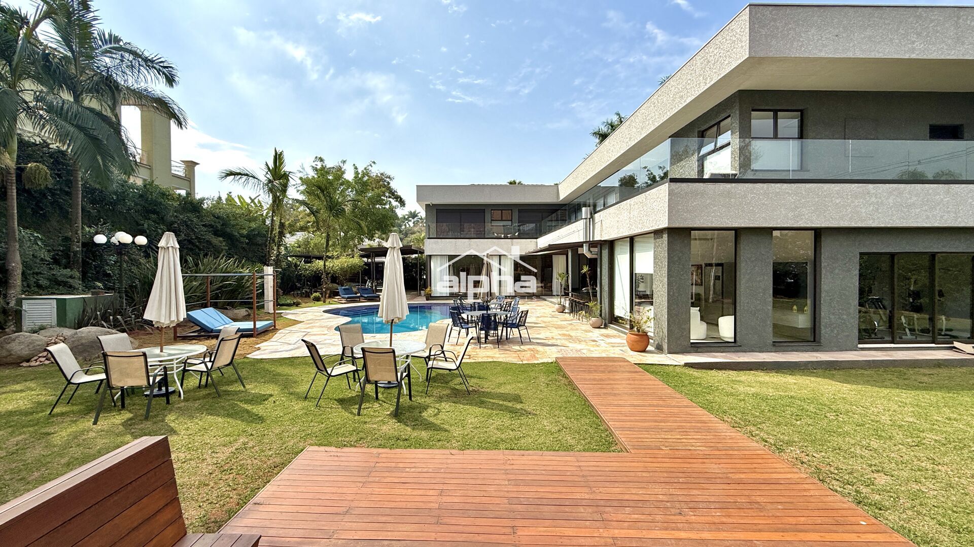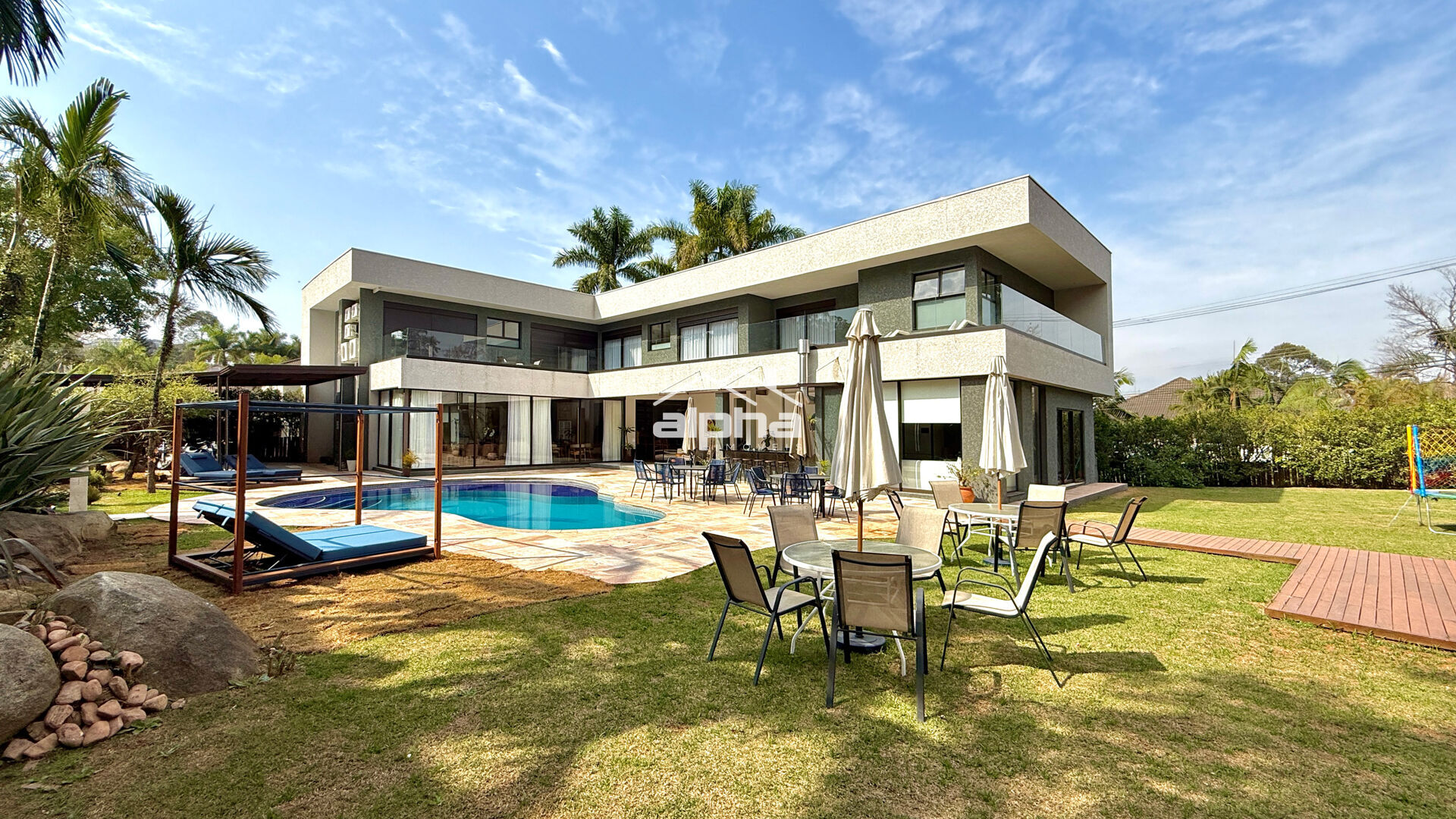 Essa casa fica em um dos mais desejados condomínio de Alphaville SP. Com 5 amplas suítes, rodeadas por uma enorme varanda, esta imponente residência oferece todo o conforto e luxo que você merece. A área construída é de 850 m² e o imóvel conta com uma ampla variedade de comodidades, como academia, espaço gourmet com churrasqueira, hidromassagem, lareira, piscina, playground e sauna.