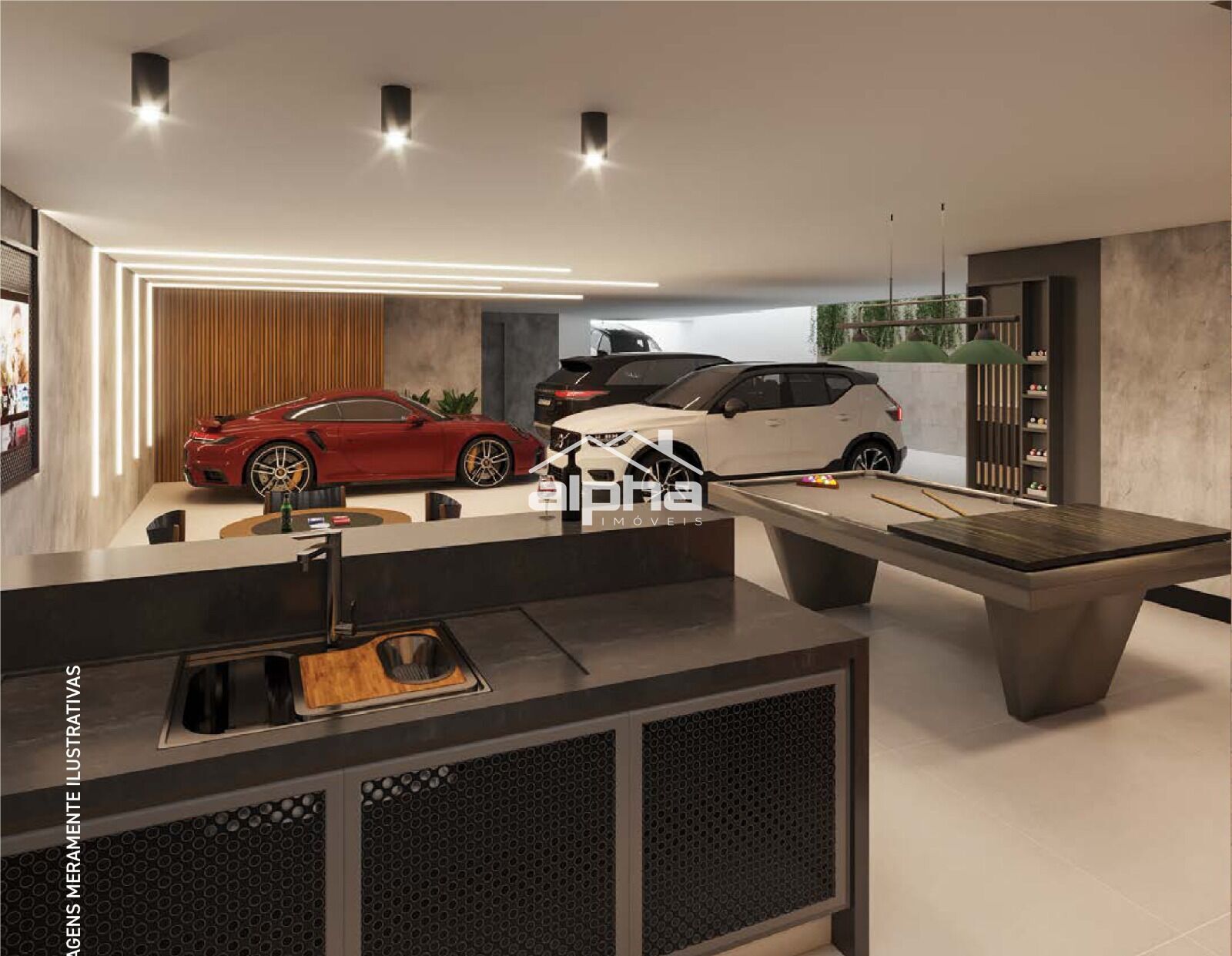 Men’s Cave integrada com garagem