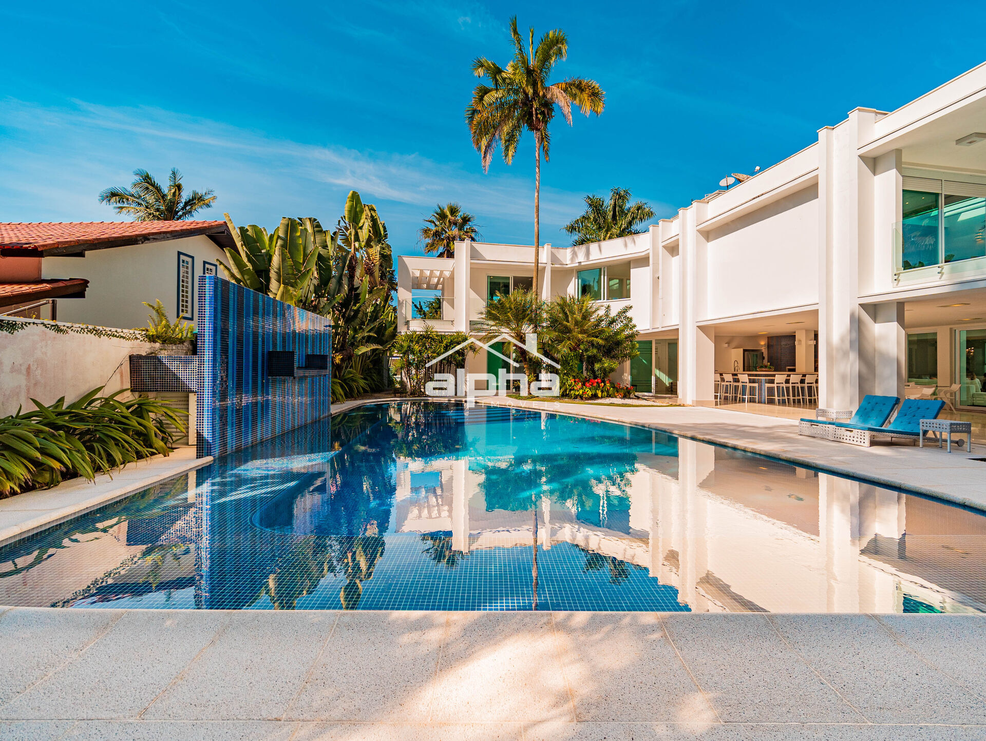 Lazer com super espaço gourmet com churrasqueira, forno a lenha e cozinha completa, piscina com mais de 90 metros quadrados, aquecida e com hidromassagem.
